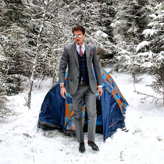 ▼他喜歡穿著西裝,在冰天雪地裡做任何事情,垂釣、露營、騎腳踏車換做別人一定覺得太瘋狂了,但是在他身上只看到了優雅和迷人。