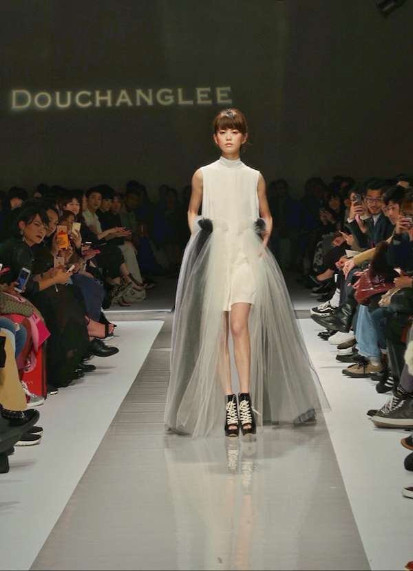 ▼DOUCHANGLEE本次的春夏大秀以「交互作用(INTERACTION)」為題,探索人與服裝的更多可能性,女性可以穿上襯衫、西裝,男性也可以穿上百摺、蕾絲,打破性別藩籬。壓軸的白癡公主則以白色襯衫式透視紗裙洋裝登場。
