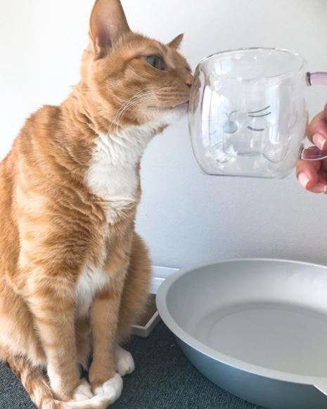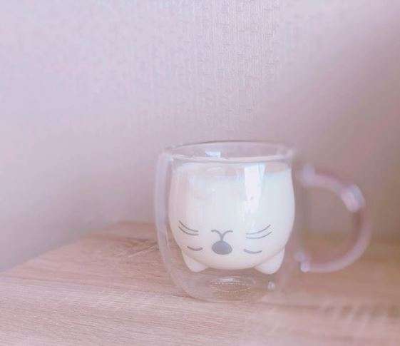 ▼這款玻璃杯的內杯是貓咪的形狀,將飲料倒進去後,貓咪也會變色。
