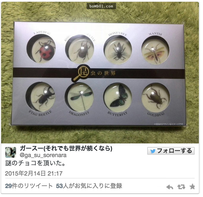 ▼「看了昆蟲的世界就收到謎一樣的巧克力了」