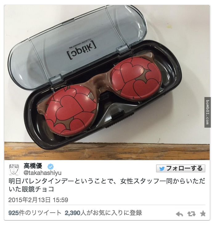 ▼「明天是情人節,這是女生們送我的眼鏡巧克力~」
