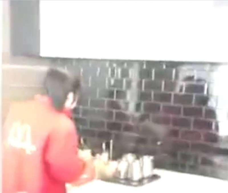 ▼楊先生表示,一名穿著麥當勞員工制服的婦人,4次到室外地面上挖雪。她將雪裝入容器中,然後拿回店內,再倒進一個標示為「運冰」的紅色桶裡。楊先生沒有親眼看到餐廳員工用雪融化的水製作咖啡等飲品,但同行的朋友用餐後都出現了腹瀉症狀。