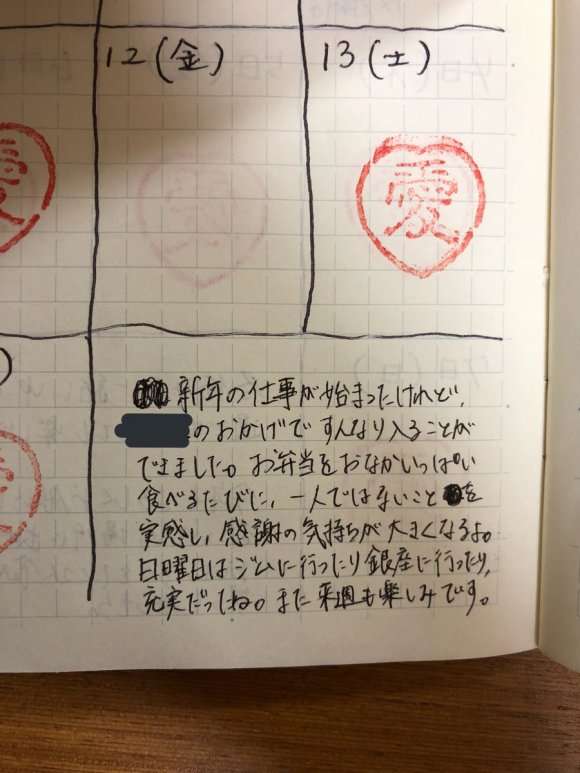 ▼「新年的忙碌工作已經開始,多虧了你,我才能這麼快適應。每次吃你為我準備的便當,我都能體會到自己不是孤單一個人,並滿懷感恩。這個週末我們一起去健身,還去逛街,非常充實愉快。期待下週。」