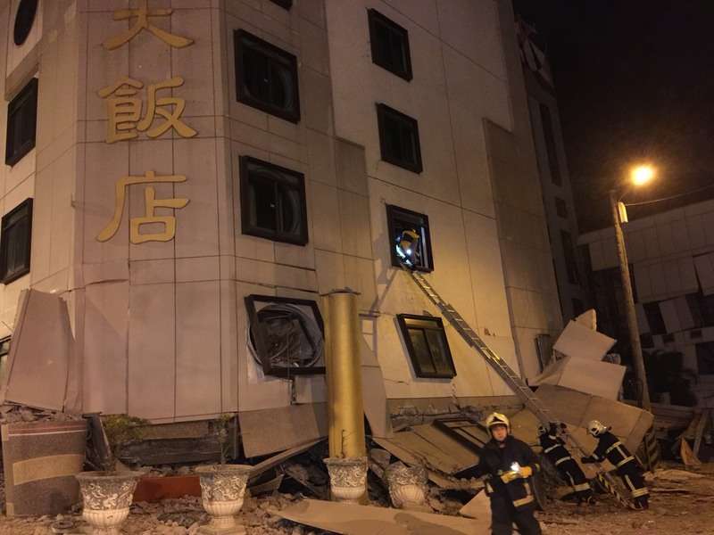 2018年02月07日2月6日晚間,花蓮發生6.0強震,好幾棟大樓倒塌傾斜,位於公園路上的統帥飯店更是整棟傾倒,一樓水泥墩被折斷,三樓瞬間變成一樓。搜救員緊急疏散飯店的房客與員工,發現3名員工被困。