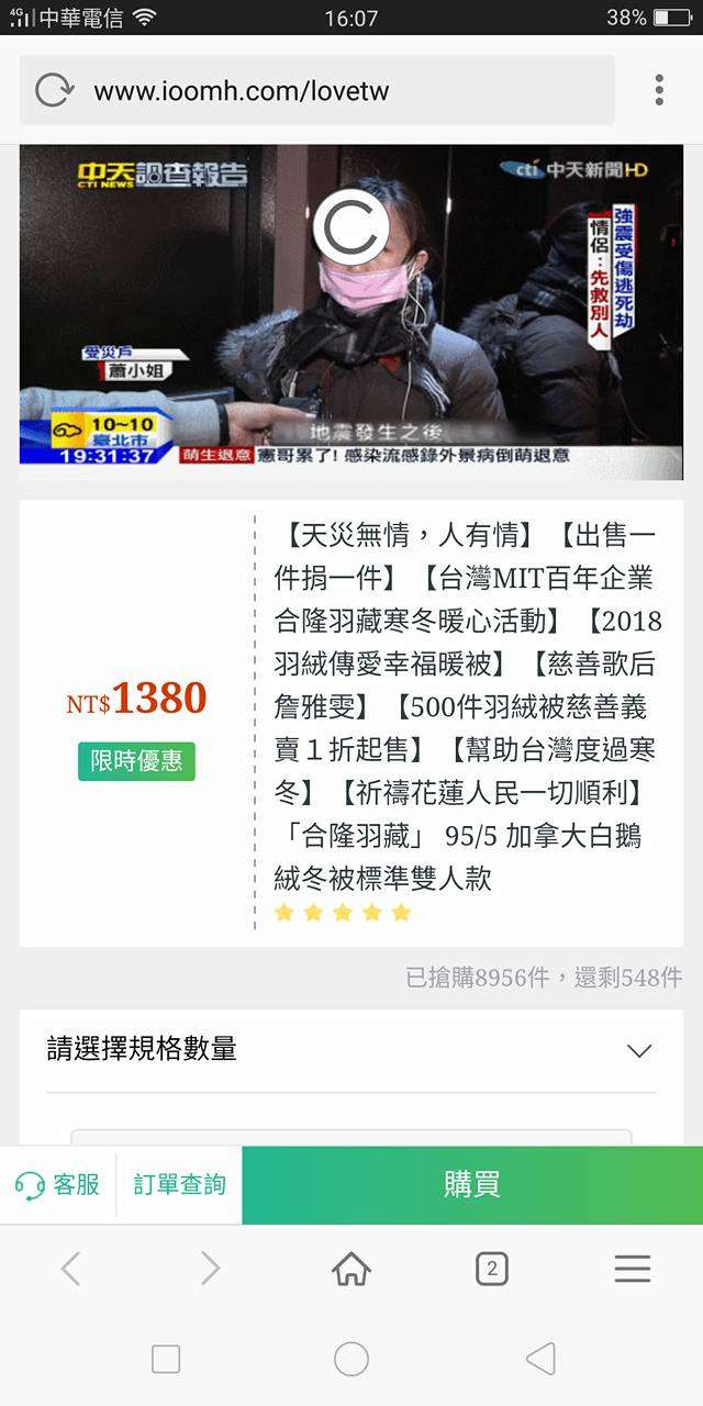 ▼但購物網站上的新聞頁面,卻是刻意蓋過原本新聞的採訪,宣稱民眾有接收到送來的被子。