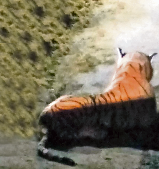 ▼與朋友們玩了一會兒後,Bruce坐立不安,還是決定去看看牛的情況。但他走到牛棚時,卻在旁邊的小路上看到了一個龐然大物-那是一隻大老虎!