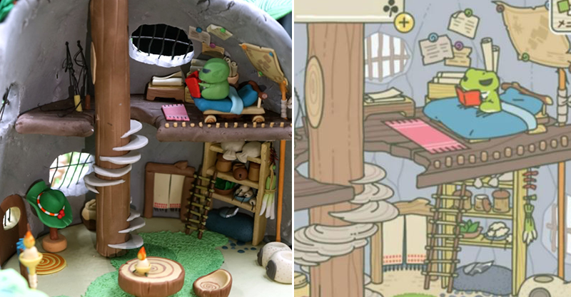 ▼有玩「旅行青蛙」的朋友們對於這個畫面相信都不會陌生吧,來看看這對姐弟神還原遊戲畫面場景的蛋糕吧!