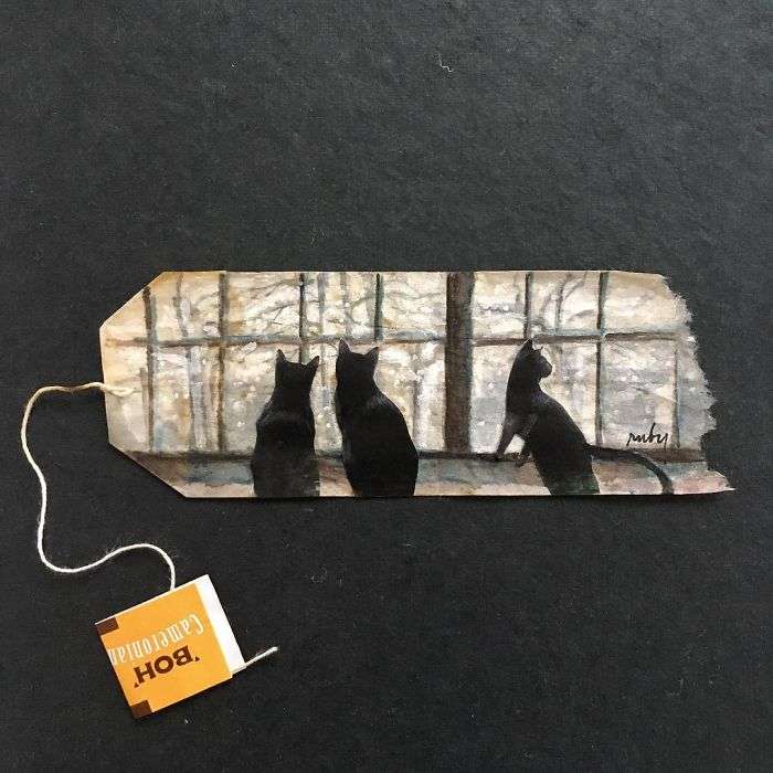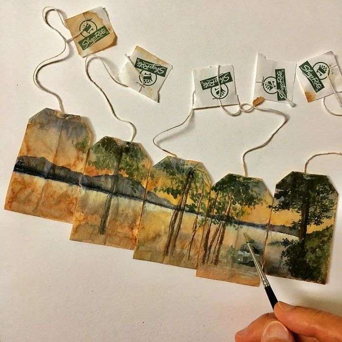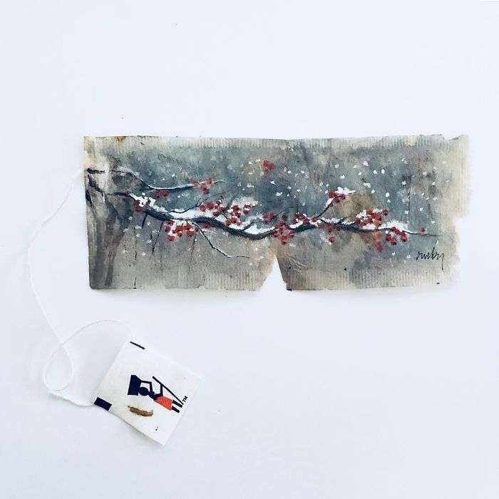 2018年02月08日每個人都有自己記錄生活的獨特方法,不過這位來自紐約的Ruby Sivious使用了一個其他人想都沒想過的方法:在用過的茶包上作畫!國外網站「BoredPanda」整理了一些她的作品,大家一起來看看吧: