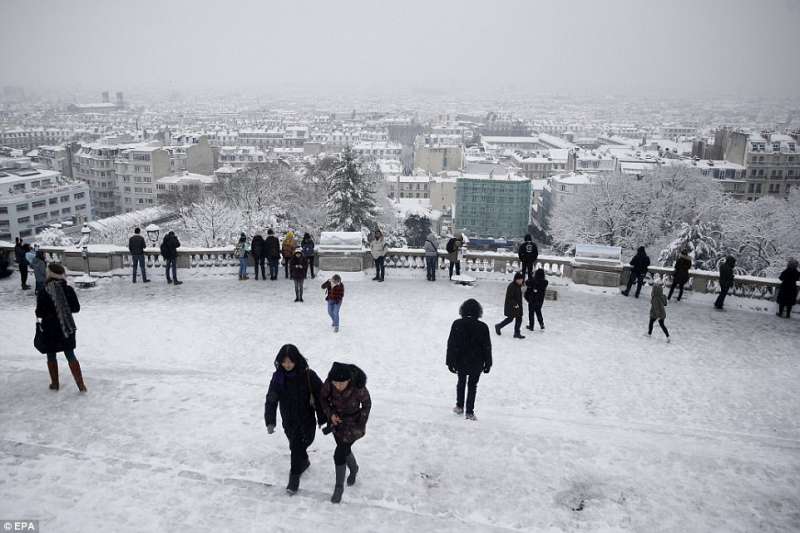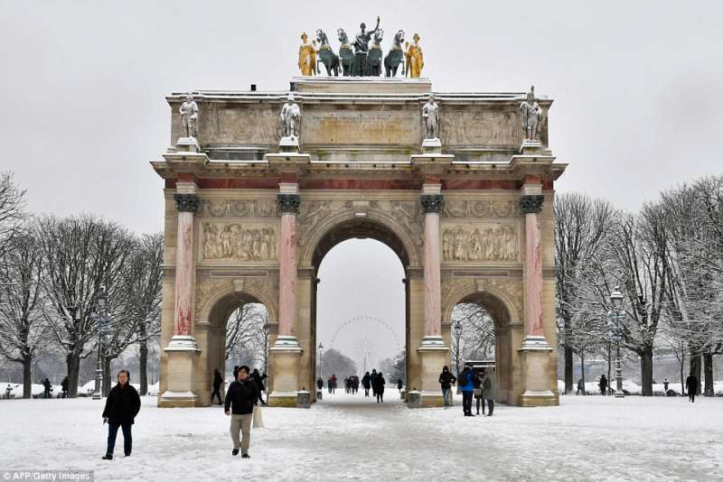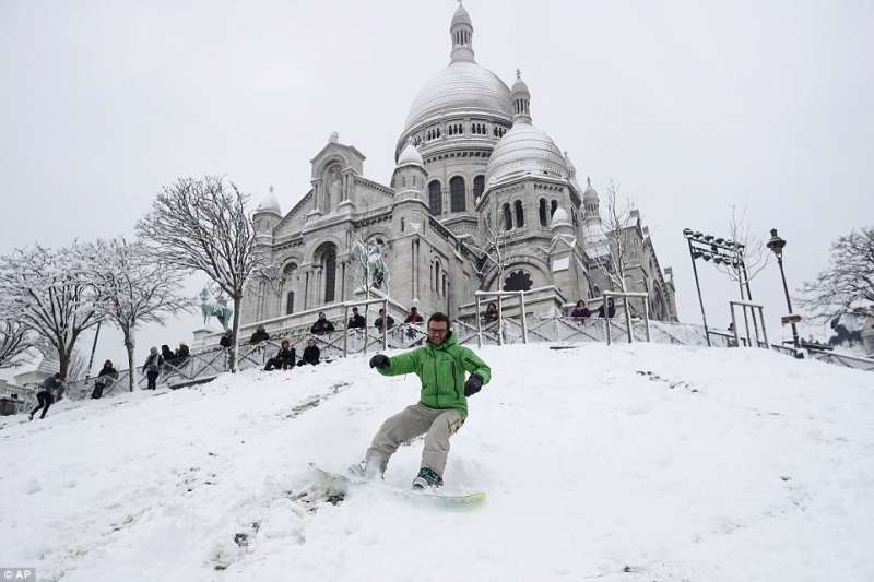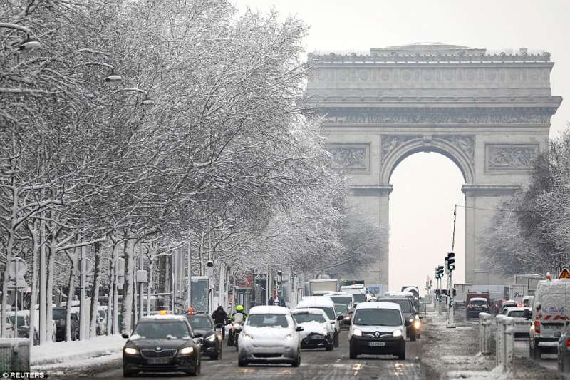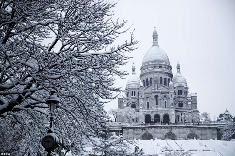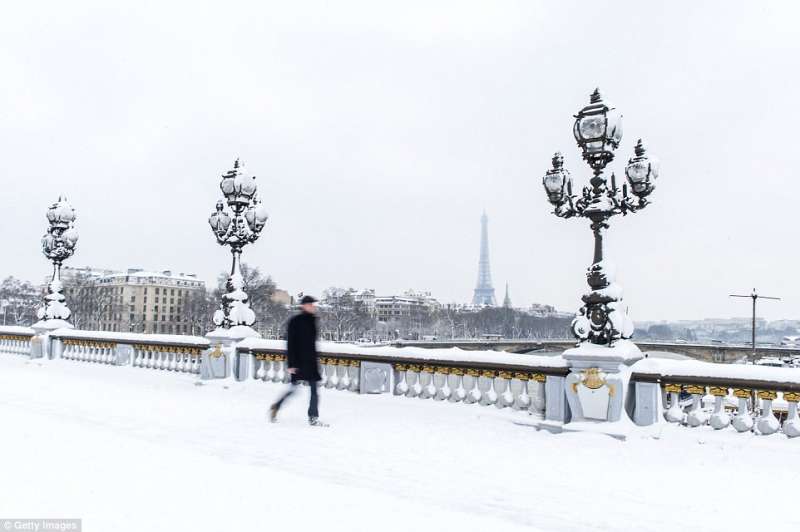 2018年02月09日幾天前,巴黎迎來了一場30年一見的大雪。一夜過後,積雪達到17.8公分,聖心聖殿、艾菲爾鐵塔等等地標建築都蒙上了一層白雪,整座城市一片白,看起來非常美。