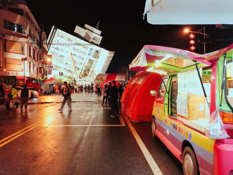 ▼這對小情侶在2月7日時眼見花蓮災情嚴重,決定下班之後也投入賑災物資補給的行列,在下午就直接開上蘇花公路前往花蓮,在現場提供免費的鐵板面、姜母茶的食物和飲料。