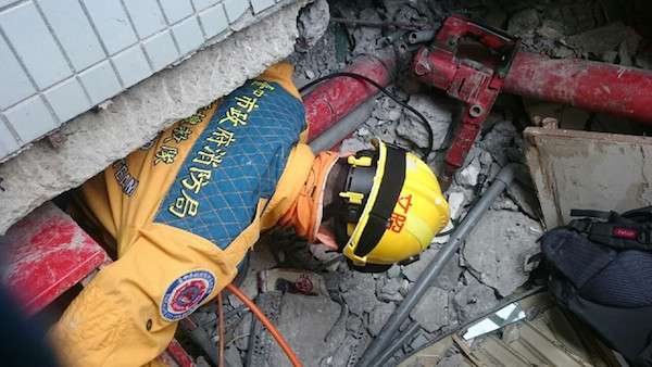 ▼過程中,救災人員必須忍受建築物傾斜的不適與危險,甚至深入瓦礫堆中挖掘,情況非常險峻。