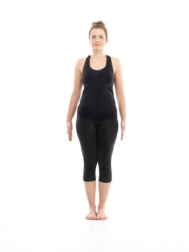 ▼山式:雙腳併攏,腰部、背部挺直,胸部打開。