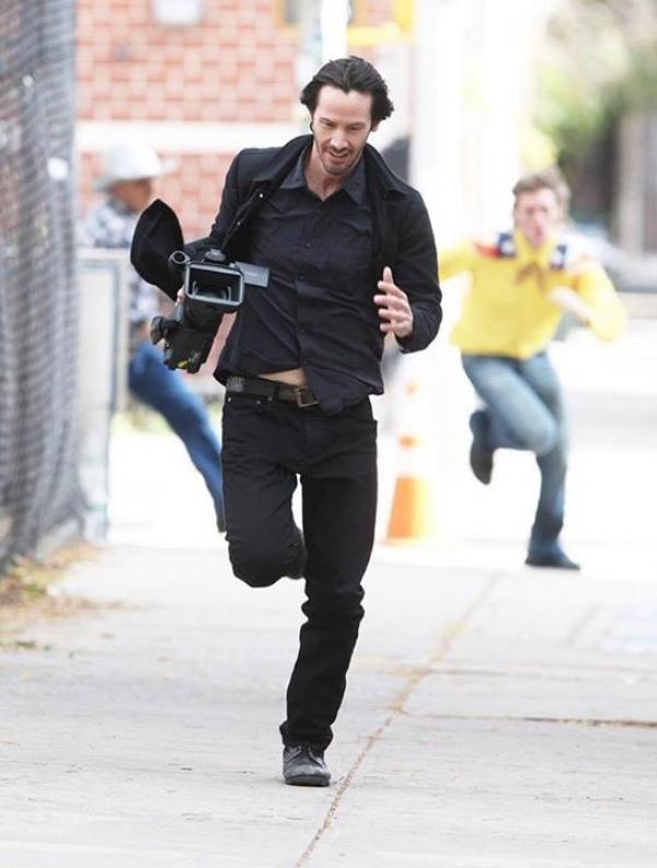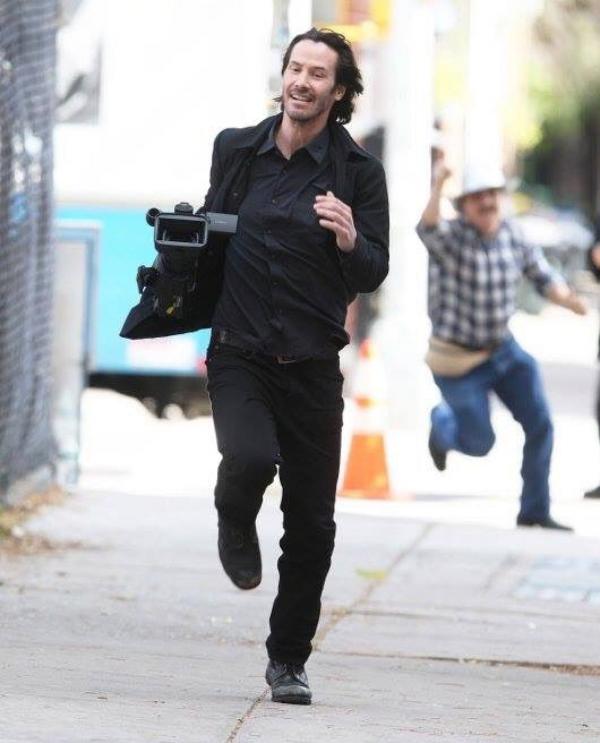 ▼Keanu Reeves抱著攝影機一路狂奔,網友一開始以為是後面的狗仔偷拍被搶走了攝影機。
