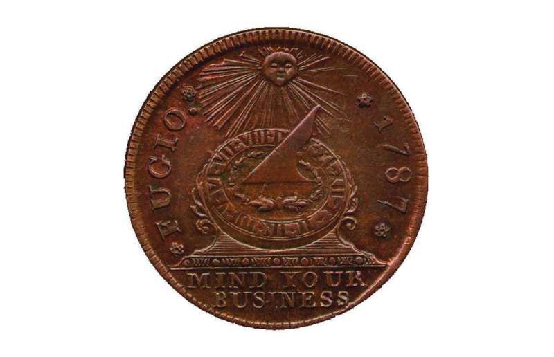 ▼美國第一枚硬幣上面印著「關好你自己的事」(Mind your business)的座右銘,是富蘭克林在1787年所設計的。如今我們看到的「我們相信上帝」格言是在1864年才出現的。
