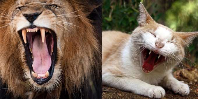▼不是所有貓科動物發出聲音,而只有獅子、美洲虎、豹和老虎能發出吼聲,這是因為牠們喉嚨附近有一塊稱為「舌骨」的骨骼。