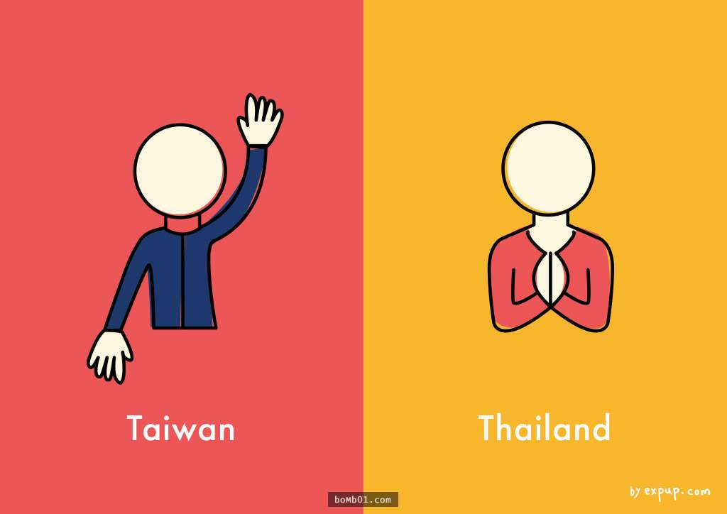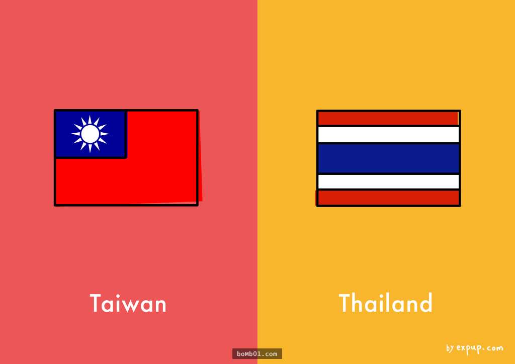 許多曾經出過國的朋友們,可能都遇過一個狀況,就是當外國人問你從哪裡來的時候,當你回答了台灣「Taiwan」,但是對方卻聽成了泰國「Thailand」。除了2個字在英文發音中有一些相似外,其中也因為台灣在國際上的知名度不足,讓大家直接聯想到泰國。最近一個設計公司就推出了10張兩國之間的差異圖,不但清晰明瞭,而且還讓大家印象深刻。