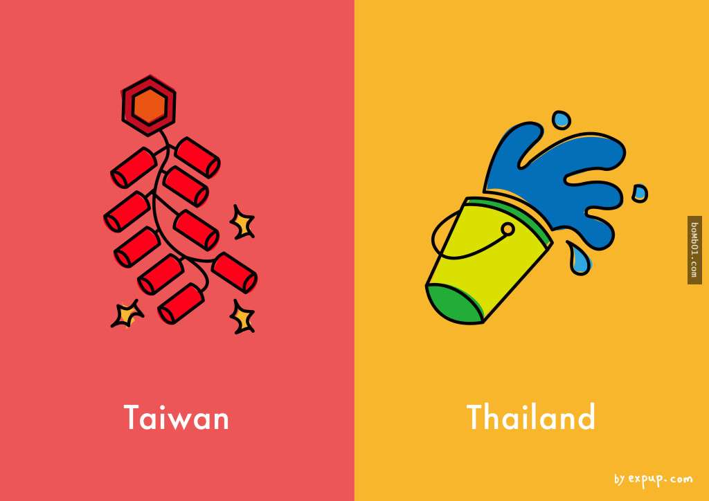▼7. 台灣過年會放鞭炮,泰國過年有潑水節。