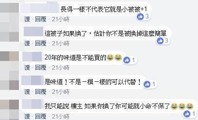 ▼近日有位網友在臉書「爆廢公社」發文,表示女友有一條自出生後就一直使用到現在的被子,距離今天已經有20年的歷史了,而女友「沒這件被子睡不著」。由於被子已經破爛不堪,他想要買一條一模一樣的新被子送給女友當「禮物」。