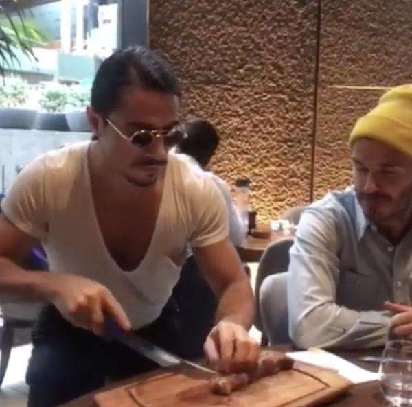 貝克漢也愛「灑鹽哥」! 他親自到桌邊服務 招牌動作一出全家笑翻