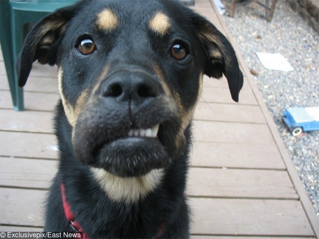 ▼蜜蜂讓我家狗狗時刻保持微笑,只是這個笑容怪怪的。