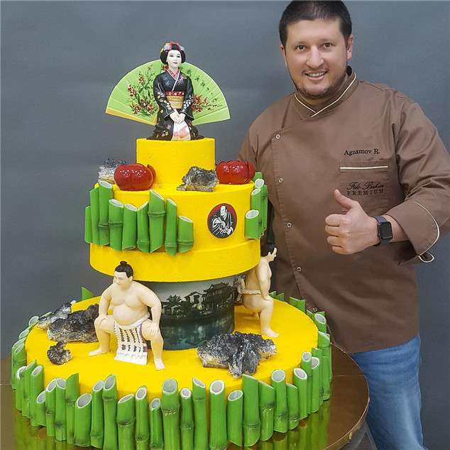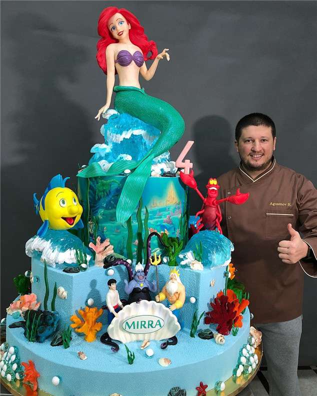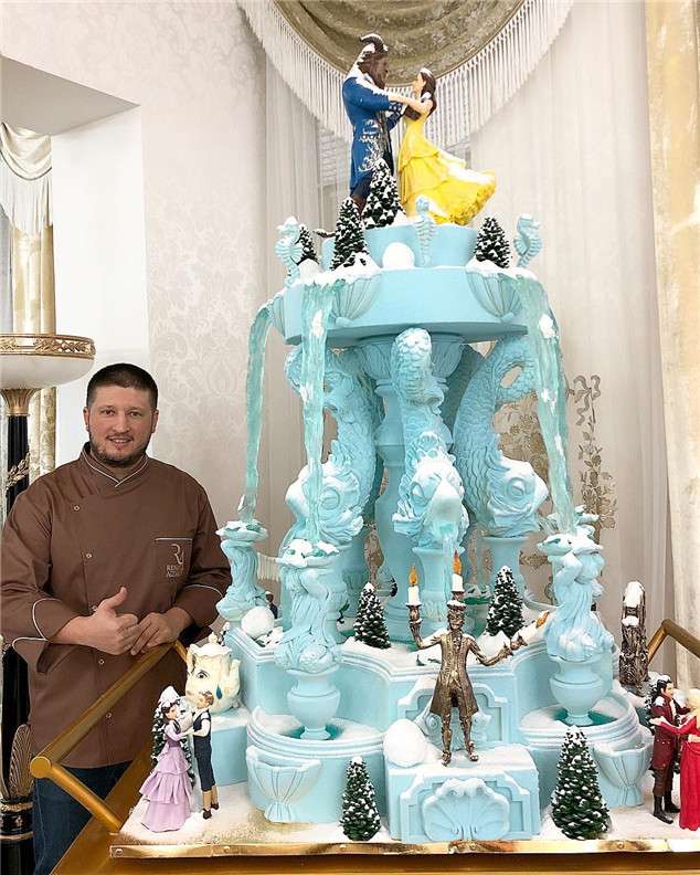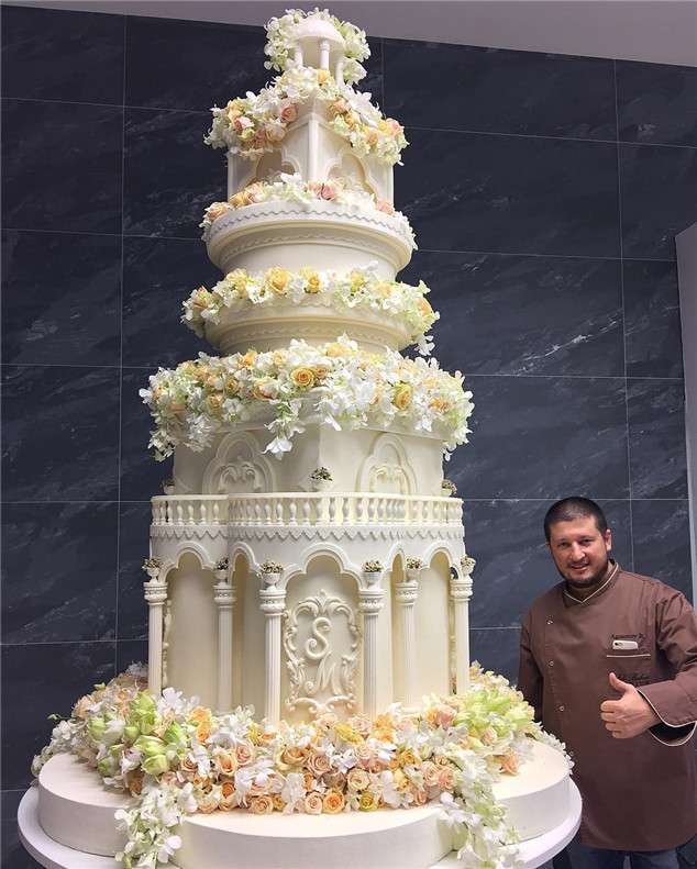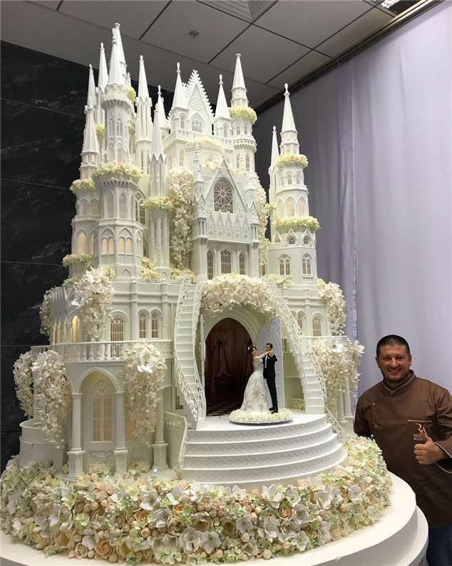 ▼這位才華橫溢的蛋糕師的作品已經不是第一次讓人驚艷了,在去年石油大亨IIkhom Shokirova女兒的婚禮上,他就製作了一款3公尺的蛋糕,需要3個人才能抬出來。