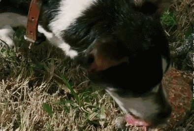 ▼狗狗吸毒後會有翻白眼等症狀,戒毒中心主要採用的就是「芥末療法」。藉由讓狗狗舔沾滿芥末的蛤蟆模型,使牠們產生抗拒感,直到最後成功戒掉毒癮。