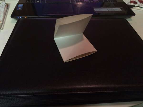 ▼從中間再對折,開口朝左邊。