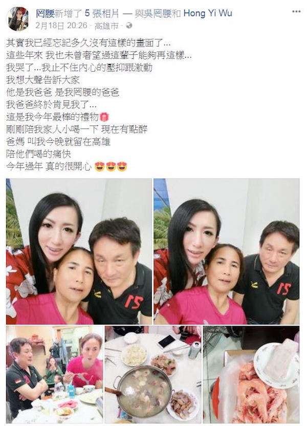 ▼罔腰也帶著鳳梨一起「回娘家」,感動說自己等了這麼多年,幾乎已不再奢求,「我哭了…我止不住內心的壓抑跟激動,我想大聲告訴大家,他是我爸爸,是我罔腰的爸爸,我爸爸終於肯見我了…這是我今年最棒的禮物!」