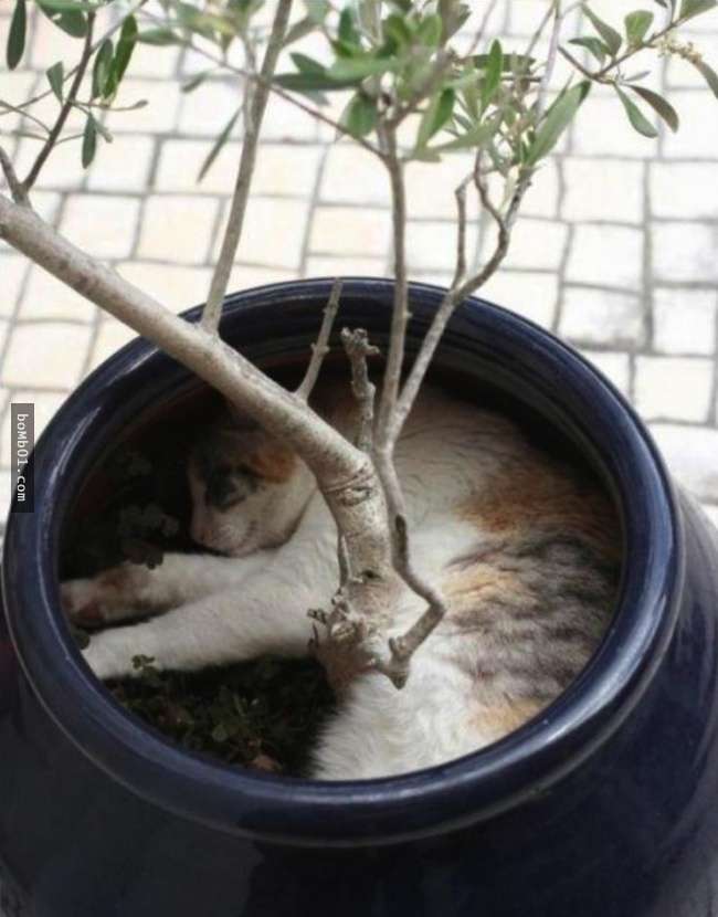 ▼一隻憂傷的貓咪,睡覺都要躲起來。