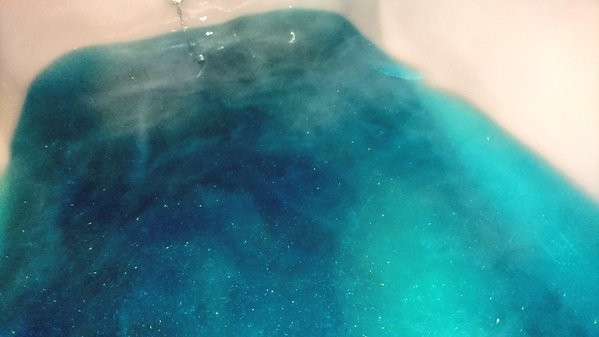 ▼這款泡澡球顏色迷幻,放進浴缸中攪一攪,就會變成深不見底的藍色,還亮晶晶的,與星空很像。
