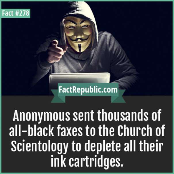 ▼4. 匿名者組織曾向山達基教會傳了上千張全黑的傳真,目的是用光他們的墨水。