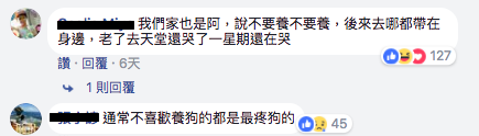 ▼網友看了故事深有同感,紛紛分享自家的經驗:「我們家也是啊!說不要養,後來去哪都帶在身邊,老了去天堂還哭了」。