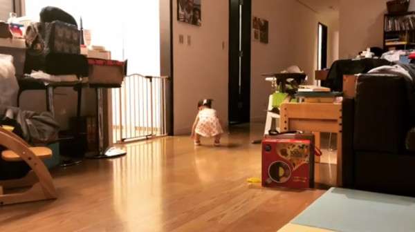 ▼影片中,LUCY穿著印有水果圖案的無袖小洋裝、小球鞋,在沙發附近走來走去,非常可愛。她年紀小,走得不穩,經常跌倒,但隋棠和老公都沒有出手幫忙,只是微笑看著她自己玩。
