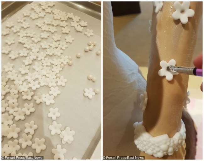 ▼整個蛋糕使用了5000個小雕花,花了10天才全部貼上去。