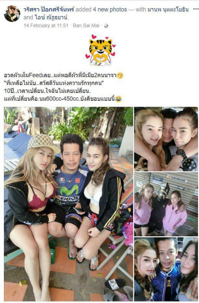 2018年02月26日泰國有男子好「性」福,每天左擁右抱兩名正妹妻子,還與九名子女共享天倫之樂!他常在臉書中曬恩愛,還向大家分享幸福秘訣,就是要「照顧每位妻子的感受」,不要偏袒或忽視任何家人。