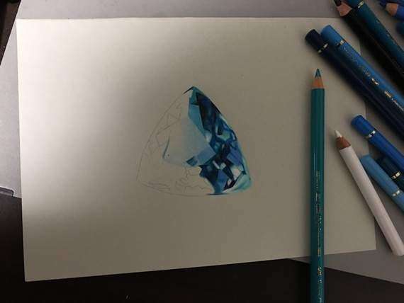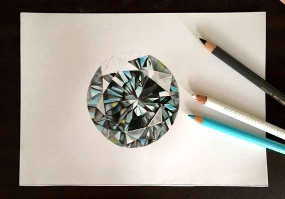 ▼每一款鑽石的剖面和光線折射都如此逼真,直到看到它們的創作過程才相信這是畫出來的。