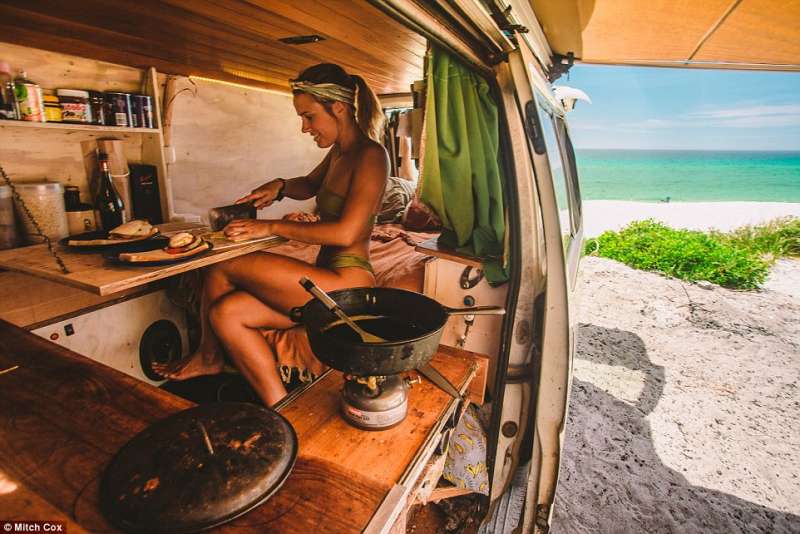 ▼這樣無時無刻待在一起的生活,也需要一些獨處的時間。他們約定好每天都會有一段時間各自做自己喜歡的事,好像Mitch喜歡去衝浪;Cleo就在車上畫畫等,也是維持感情的好方法。