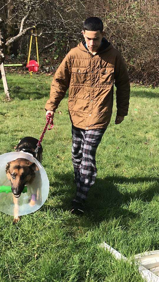 2018年02月28日美國華盛頓16歲男孩Javier家中有一隻叫Rex的德國牧羊犬,Javier與Rex感情很好,每天都一起玩。那天下午大人不在家,Javier突然聽到了陌生人的說話聲,他覺得不太對勁,就帶著Rex跑到了樓上,並打電話報警。