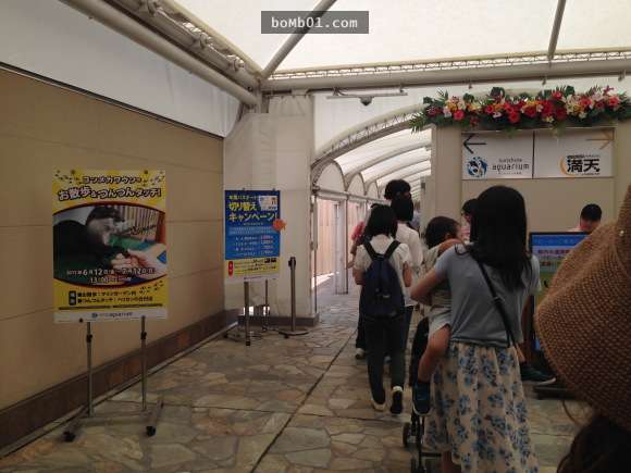 ▼一位遊客在兩年前與水獺握手後,再一次來到這裡,想要重溫那種溫馨的經歷,而他在海洋館入口看到的是這樣長長的隊伍!