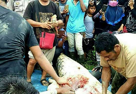 6公尺巨鱷「形跡可疑」被當地人抓住 剖開肚子「真的發現人體殘肢」