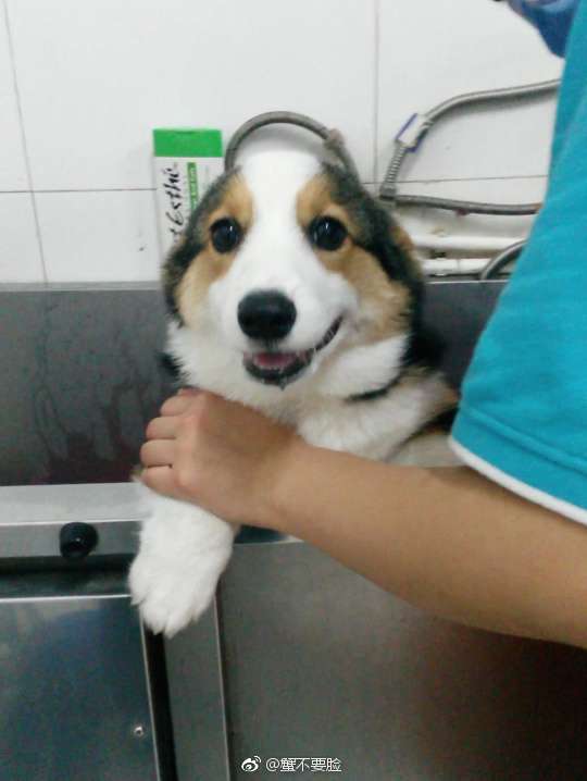 2018年03月07日微博網友「@蟹不要臉」家有一隻叫賤賤的可愛柯基犬。前幾天,賤賤去獸醫院檢查身體。牠剛進門就變得很緊張,臉上寫滿不安,調皮的個性全都收了起來,表現得很乖巧。