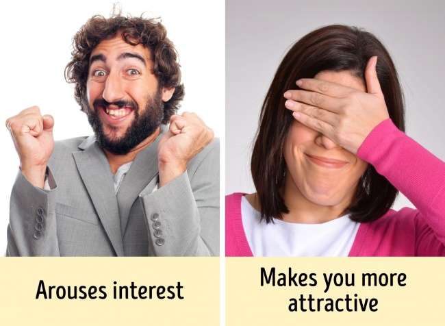 向對方挑挑眉,容易營造出自己沒有侵略性,同時可以愉快交談的對象。我們的大腦最遠可以從2公尺處就識別出這個訊號,因此如果你對於有好感的對象,不妨對他/她挑一挑眉,不過別做得太油了!