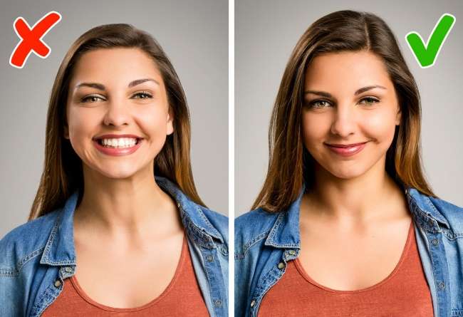 當你真誠的感到快樂時,臉上展現的笑容表情是很自然的,想要假冒這樣的笑容並不容易。相反的如果你笑得太咧嘴露齒,容易讓人感到你不夠真誠在假笑。
