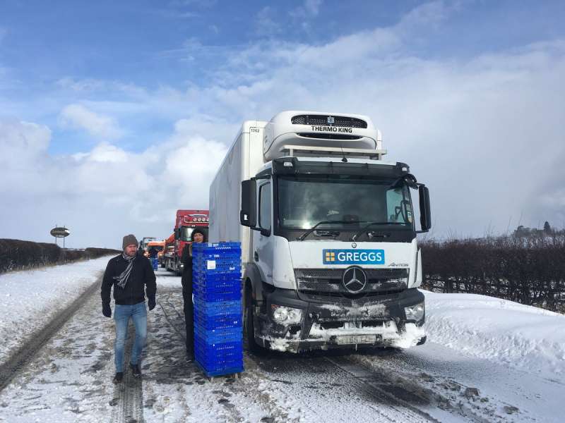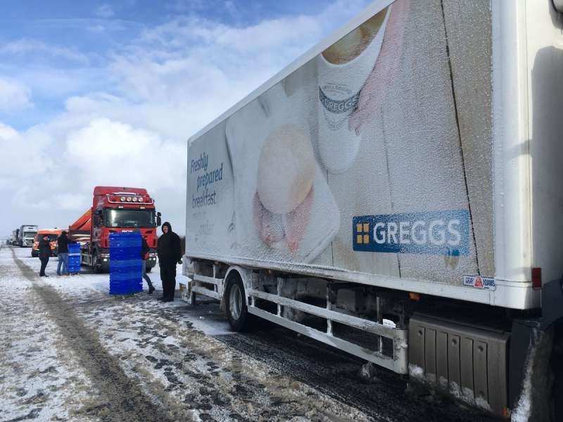 2018年03月07日受西伯利亞強冷空氣影響,英國遭遇4年來最嚴重的大雪,多地交通受阻。前幾天,很多車輛就被困在了A1高速公路上。一般來說,遇到這種情況大家都很煩躁,但零售連鎖餅店「Greggs」的司機卻給了所有人一個大驚喜。