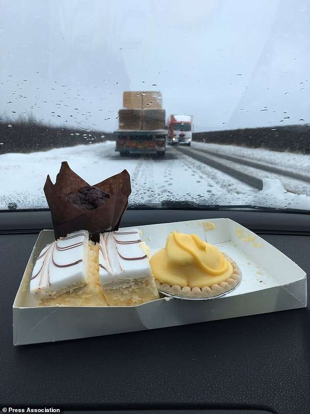 ▼Les說:「他是個很棒的人。他說如果沒在規定的時間內把蛋糕送到指定的地方,這些蛋糕就要報廢了。當時天氣很冷,我的手指、腳趾都凍得失去知覺,但非常開心。」「Greggs」的總監則表示:「我們為Jon驕傲,他做的事讓那些在寒冷天氣中被困在車裡的人感覺很溫暖!」