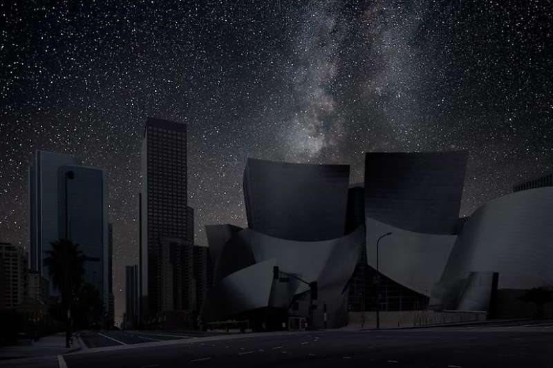 Thierry Cohen到與城市同緯度的曠地拍攝星空,再把這些原始風貌與都市合成。
