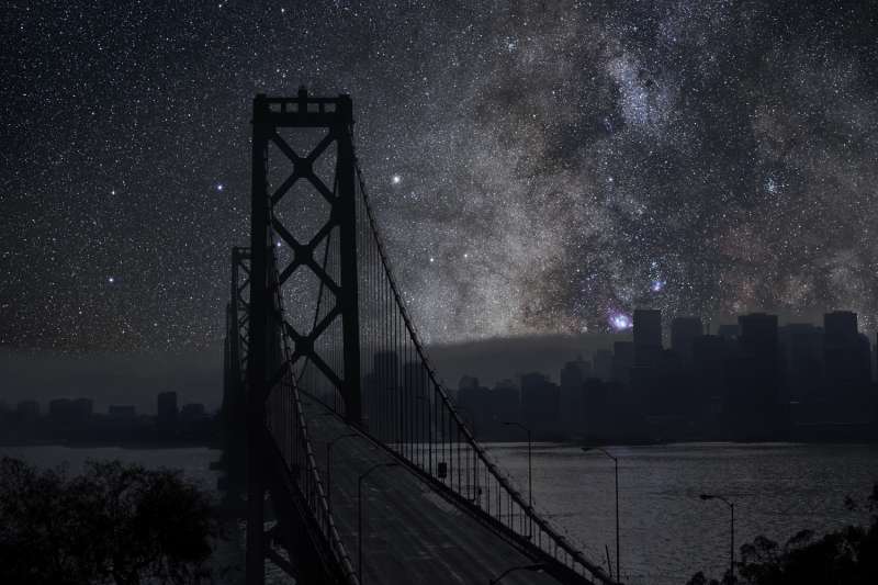 2018年03月08日都市裡人口密佈,即使夜晚想要看星星也頗有難度。法國攝影師Thierry Cohen就合成了一系列的都市照片,提醒在沒有空污、光害的情況下,我們原本的天空有多麽美麗!