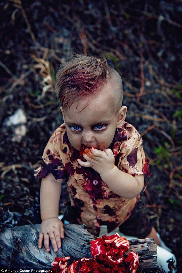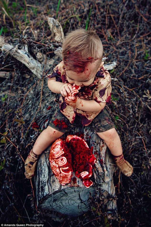▼不用說,兒子只是化上了殭屍裝,吃著人腦造型的蛋糕。但網友還是狂罵道:「哪個媽媽會給孩子拍這種血腥的照片?」、「怎麼能把兒子變成喪屍?」、「太噁了吧!」