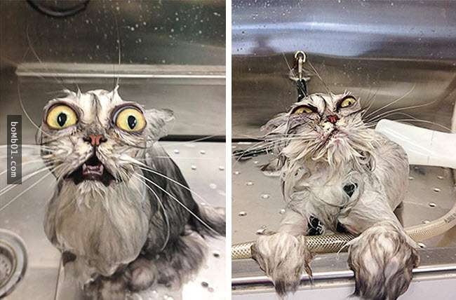 主人:「喵…我只不過給你洗個澡而已…」(無奈)
