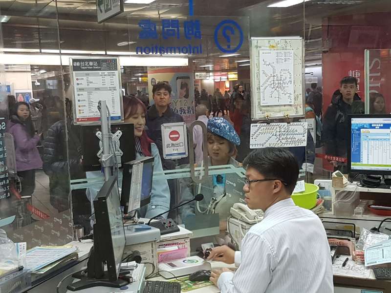 ▼由於節目宗旨就是「窮遊」,因此搭捷運也是少不了的,節目組派出外語能力很好的哈妮向台北捷運站務人員咨詢問路,也引起了許多民眾圍觀。